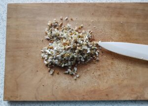 Daheim zerkleinere ich die Knospen, gebe sie in ein Glas, fülle mit dem Lösungsansatz auf, schüttele vorsichtig und stelle den Ansatz mit Beschriftung für 4 Wochen zur Seite. Jeden Tag wird dann der Ansatz leicht geschüttelt.