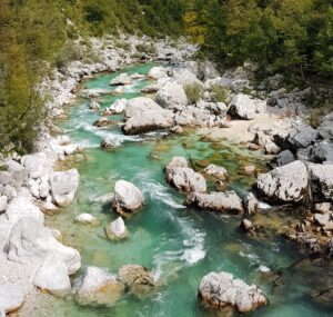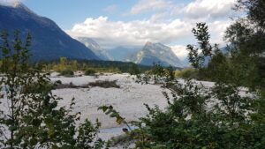 Dieses Jahr waren wir in Slowenien, ein kleines, aber feines Land, das vor allem in der Gebirgsregion noch unmittelbare Natur zu bieten hat. Wir erkundeten das Socatal, welches ganz im Nordwesten von Slowenien liegt. Dieser Fluss darf sein. Dieser Fluss mit seinem hellblau-türkisen Wasser, gesättigt mit verschiedenen Kalkmineralien, darf hoch anschwellen, sein Flussbett verändern, Steine transportieren oder ablegen.